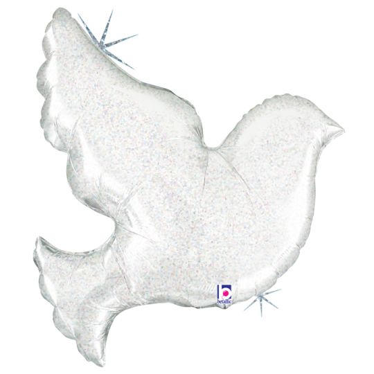 • Balão metálico prateado em forma de pomba