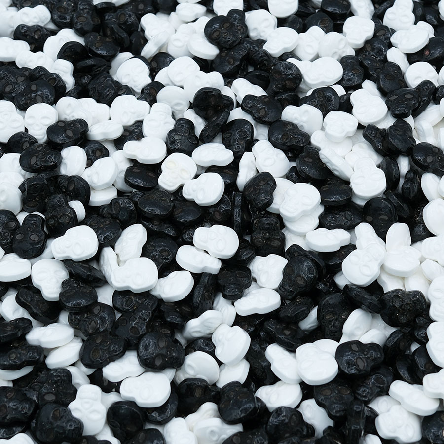 • Doces em forma de caveira preto e branco